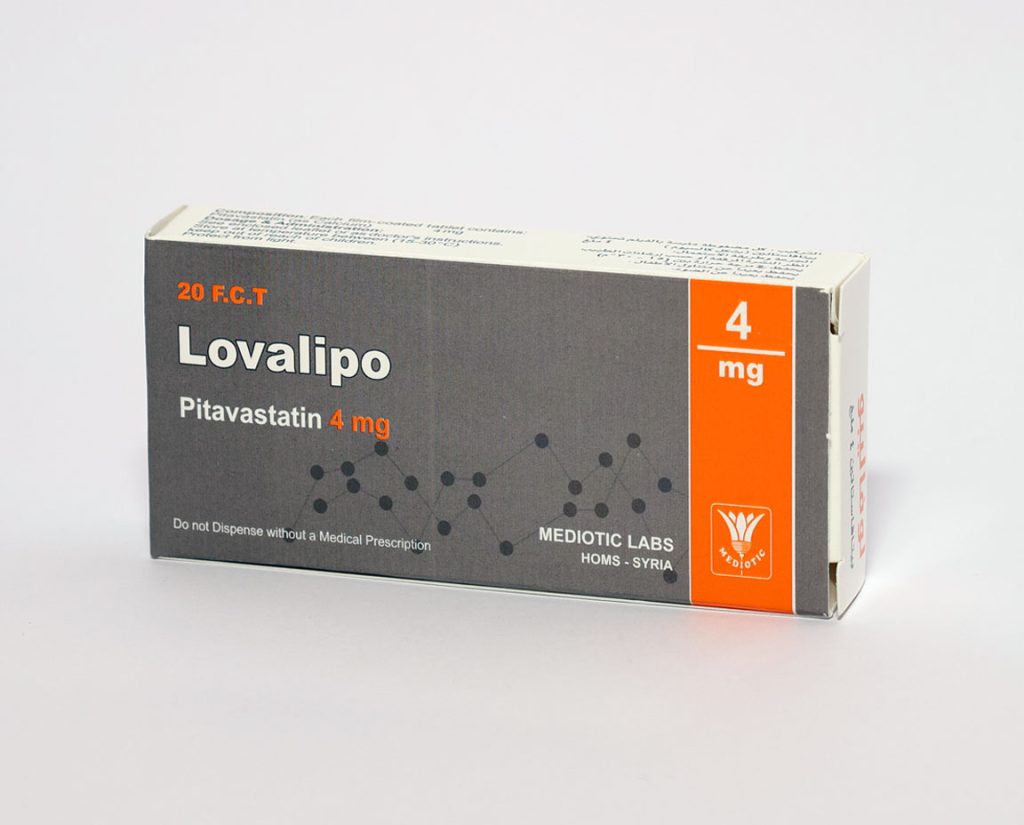 Pharmacokinetics: pitavastatin peak plasma concentrations are achieved about one hour after oral administration. The absolute bioavailability of pitavastatin oral solution is 51 %. Administration of LOVALIPO with a high fat meal (50 % fat content) decreases pitavastatin Cmax by 43% but does not significantly reduce pitavastatin AUC. The Cmax and AUC of pitavastatin did not differ following evening or morning drug administration. Pitavastatin is more than 99% protein bound in human plasma. Pitavastatin appears to be a substrate of CYP2C9, and not CYP3A4 (which is a common source of interactions in other statins. The major metabolite of pitavastatin in human plasma is the lactone. The mean plasma elimination half-life is approximately 12 hours. Indications:LOVALIPOis indicated for the treatment of patients with primary hyperlipidemia and mixed dyslipidemia as an adjunctive therapy to diet reduce elevated total cholesterol (TC), low-density lipoprotein cholesterol (LDL-C), apolipoprotein B (Apo B), triglycerides (TG), and to increase high-density lipoprotein cholesterol (HDL-C). Known hypersensitivity to product components.