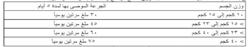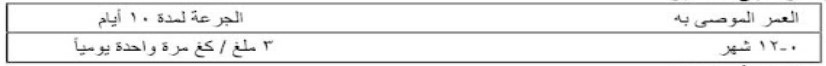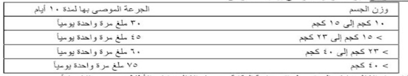 الجرعة لمدة 10 أيام ملغ / كغ مرة واحدة يومياً
