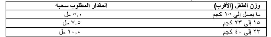 الأطفال ١ سنة أو أكبر ، ويزن أقل من ٤٠ كجم